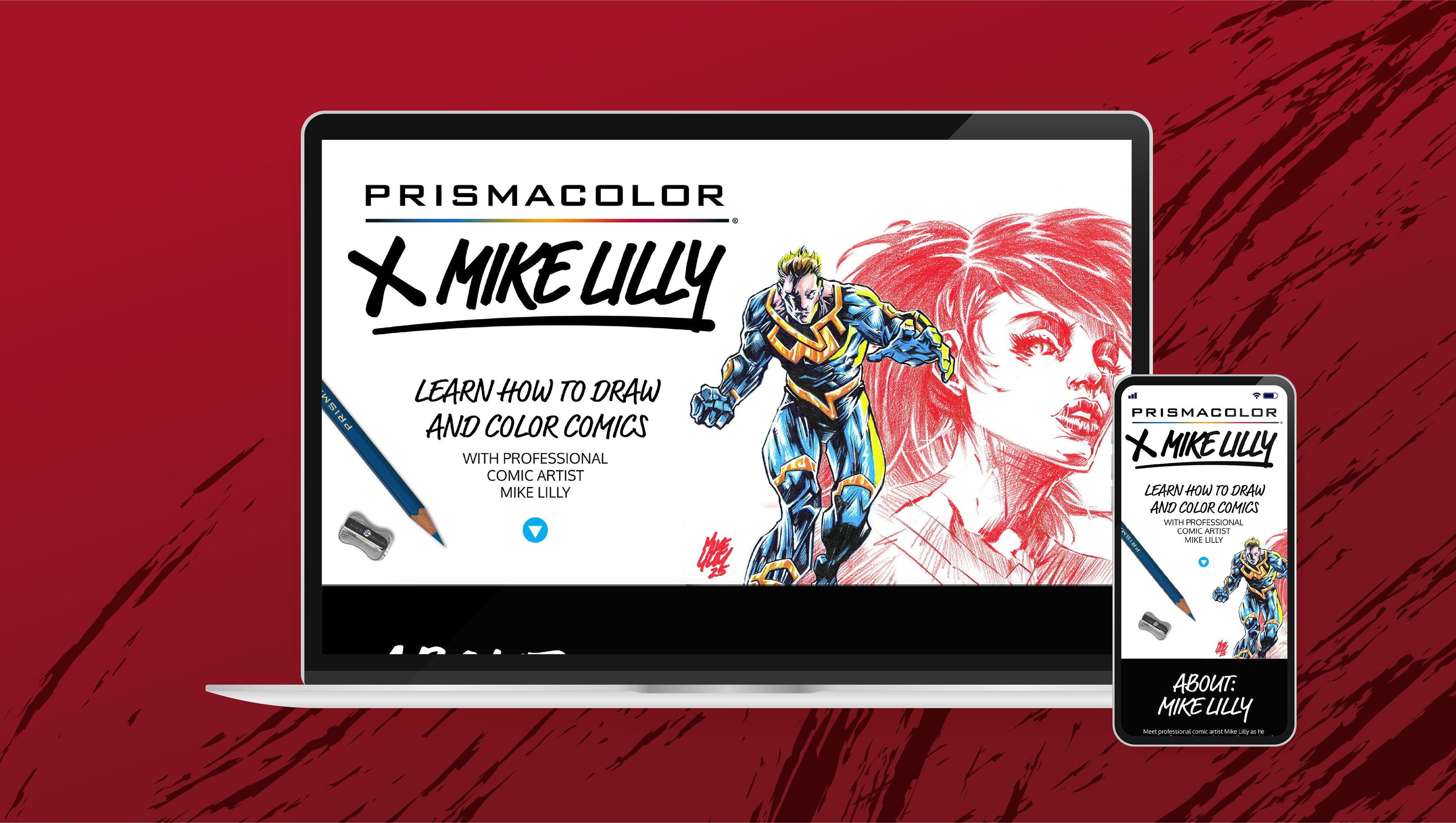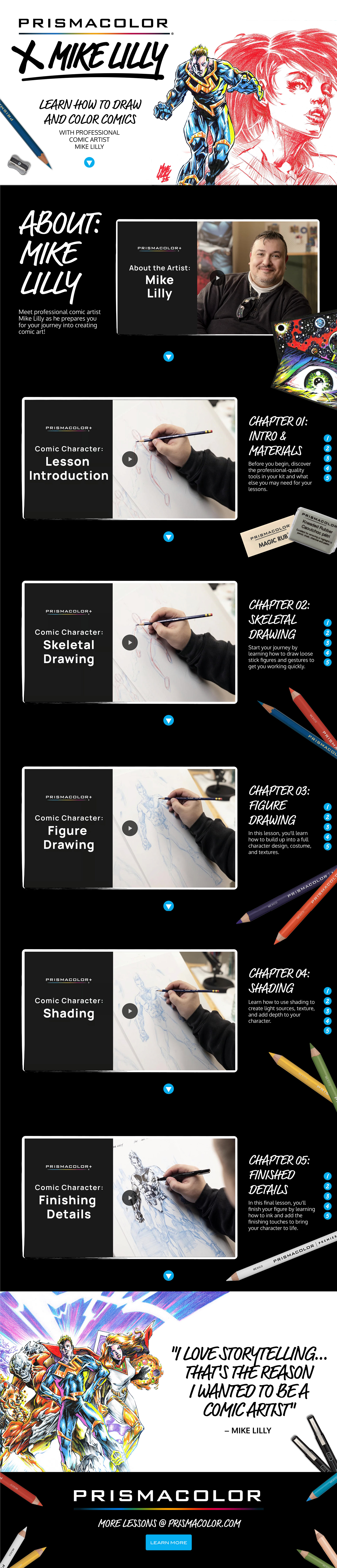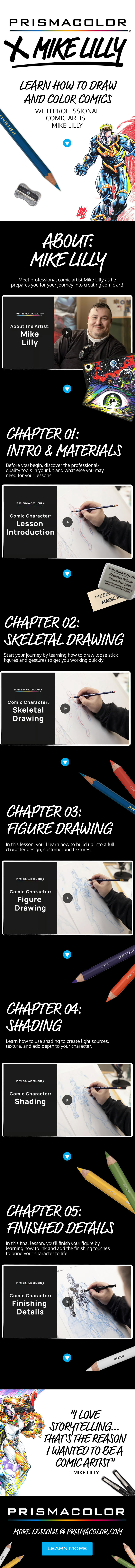 In order to see the official landing page, please visit a preview of the lesson page here: Mike Lilly X Prismacolor.